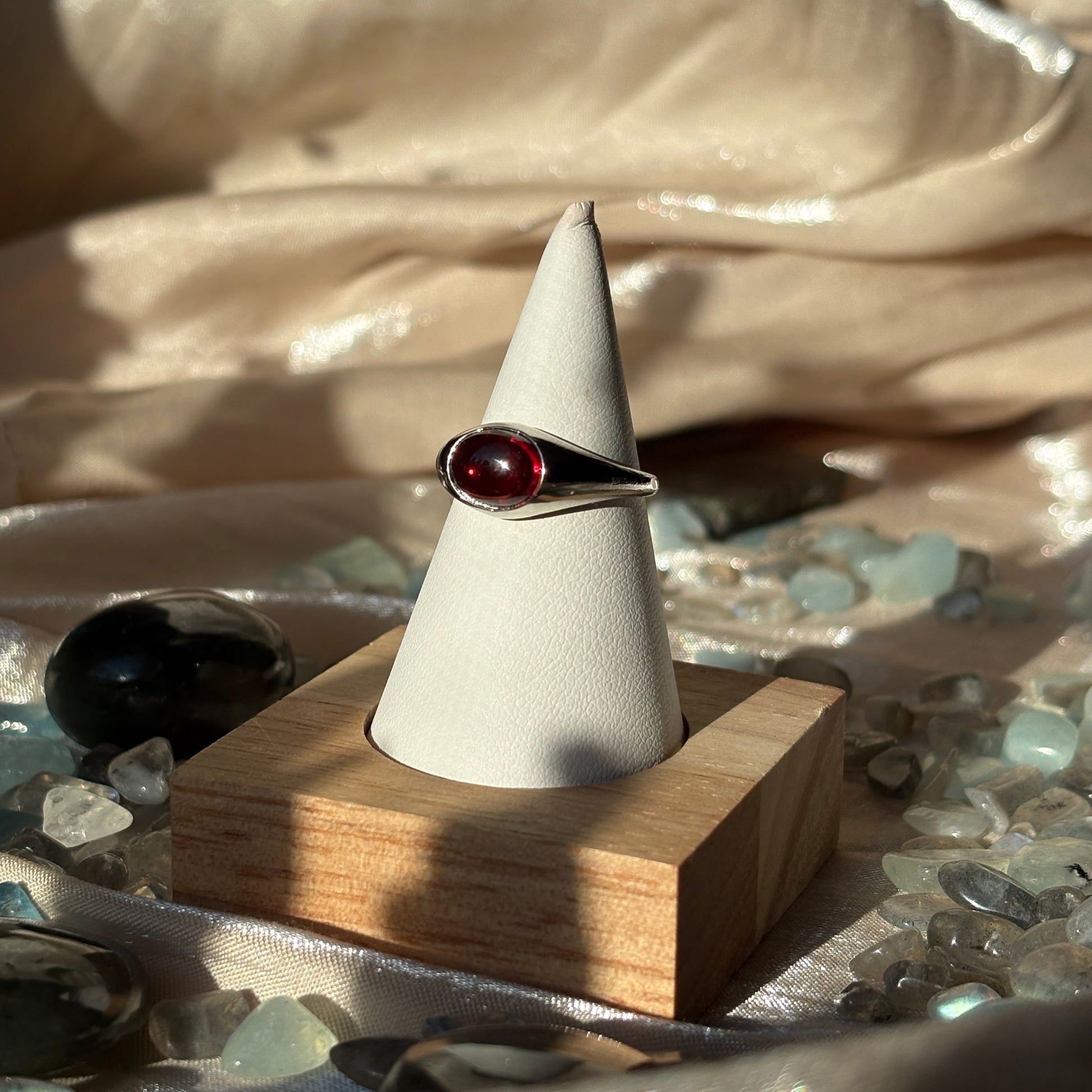 Anello regolabile in Rame placcato Oro con Granato centrale.