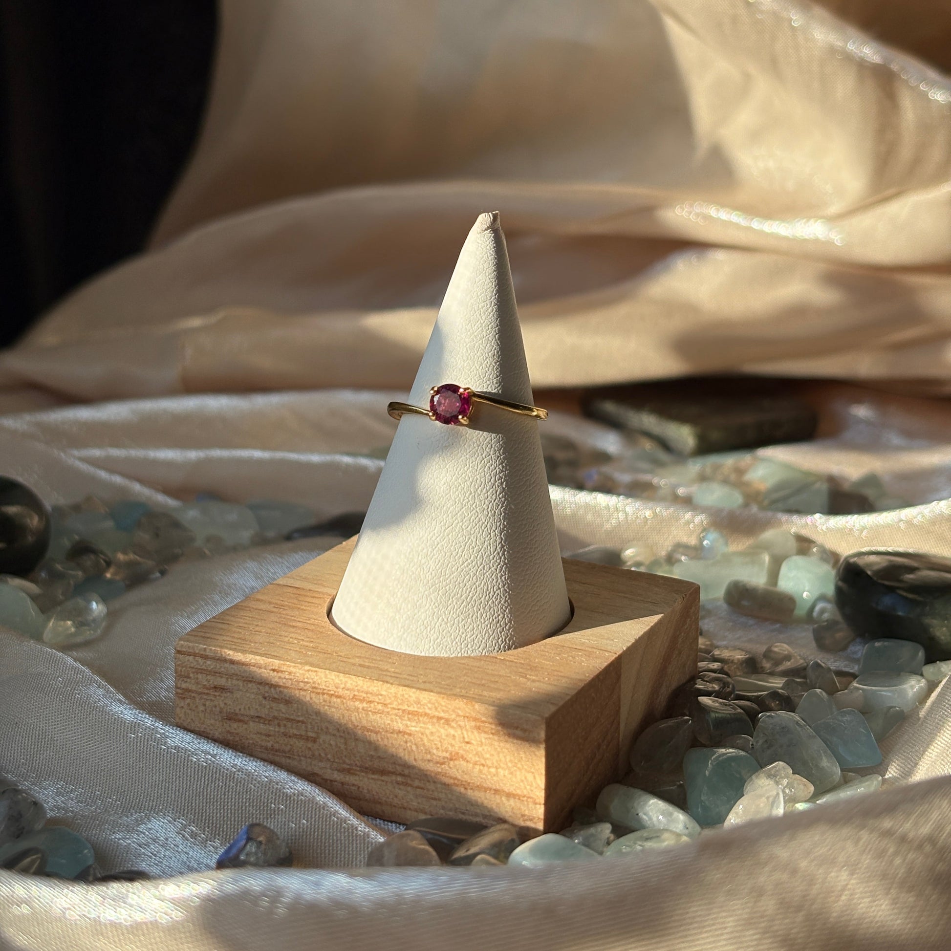 Montatura regolabile in Argento 925 placcato Oro con Granato centrale