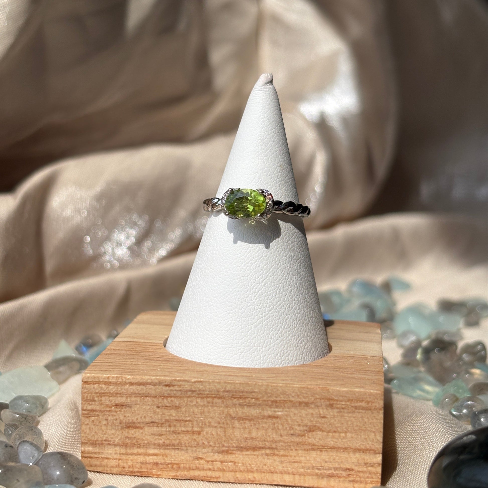 Montatura regolabile in Rame placcato Oro con Peridoto centrale e zirconi laterali.