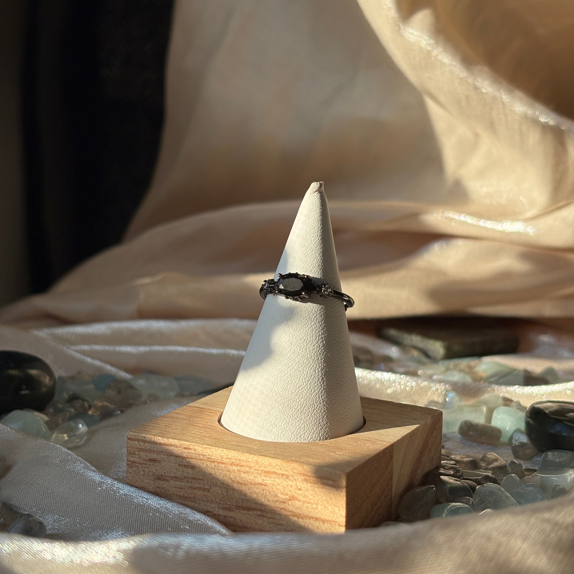 Anello con Spinello in Argento 925 con finitura brunita montatura regolabile