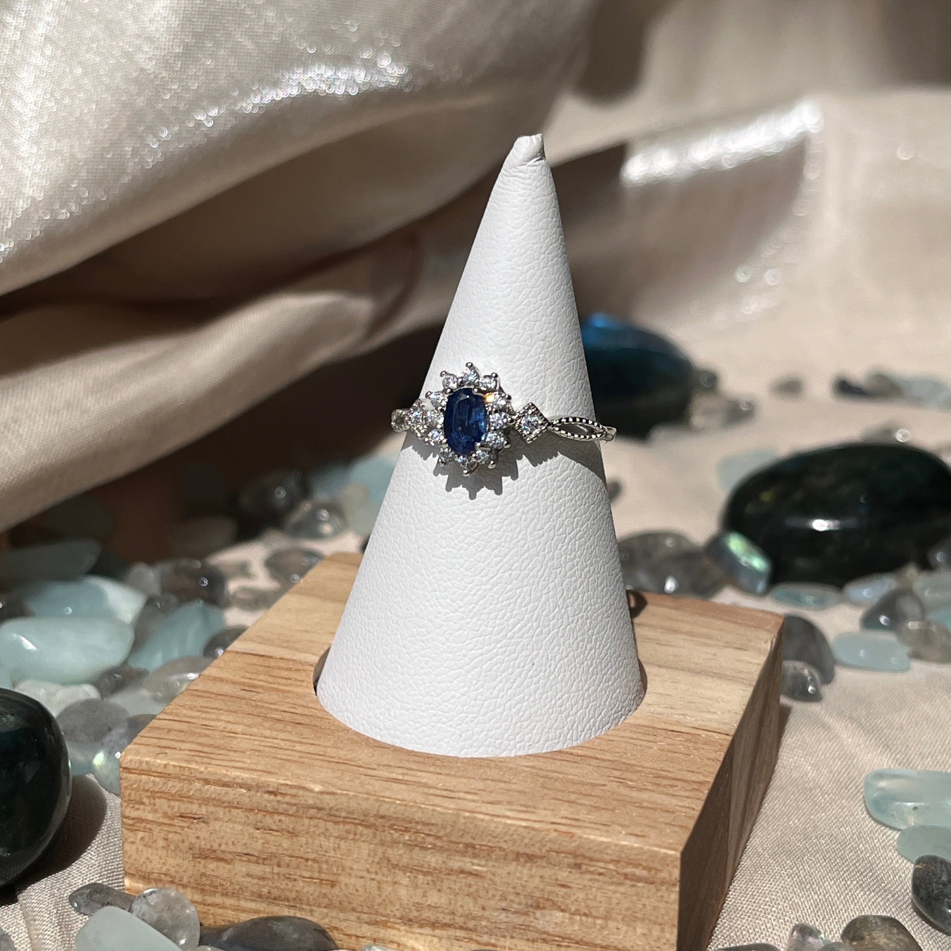 Montatura regolabile in Argento 925 con Cianite centrale e zirconi a cornice