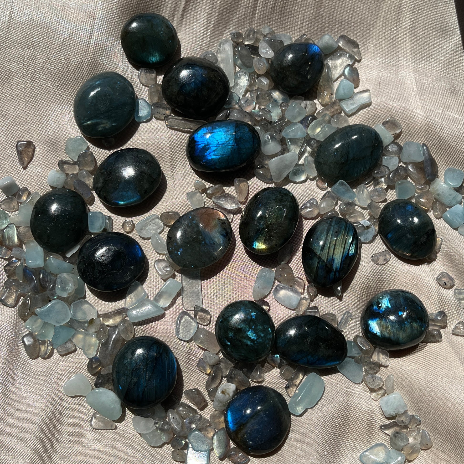 Mini palmstone di Labradorite grandezza dai 2 ai 4cm circa.