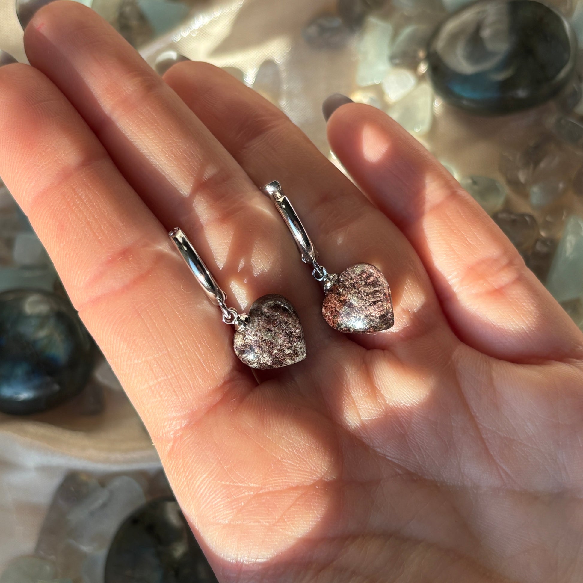 Orecchini in Rame placcato Argento con Quarzo Garden a forma di cuore