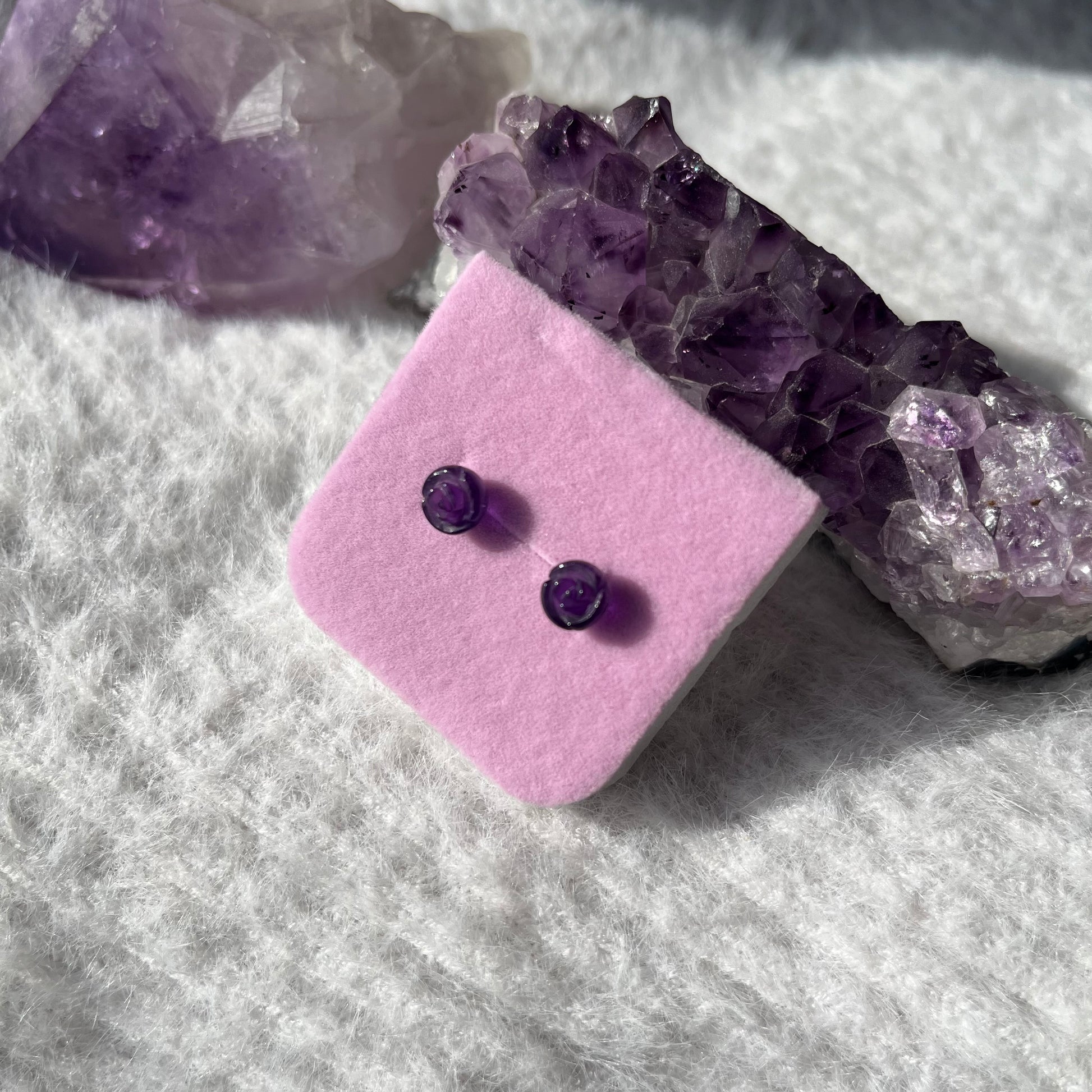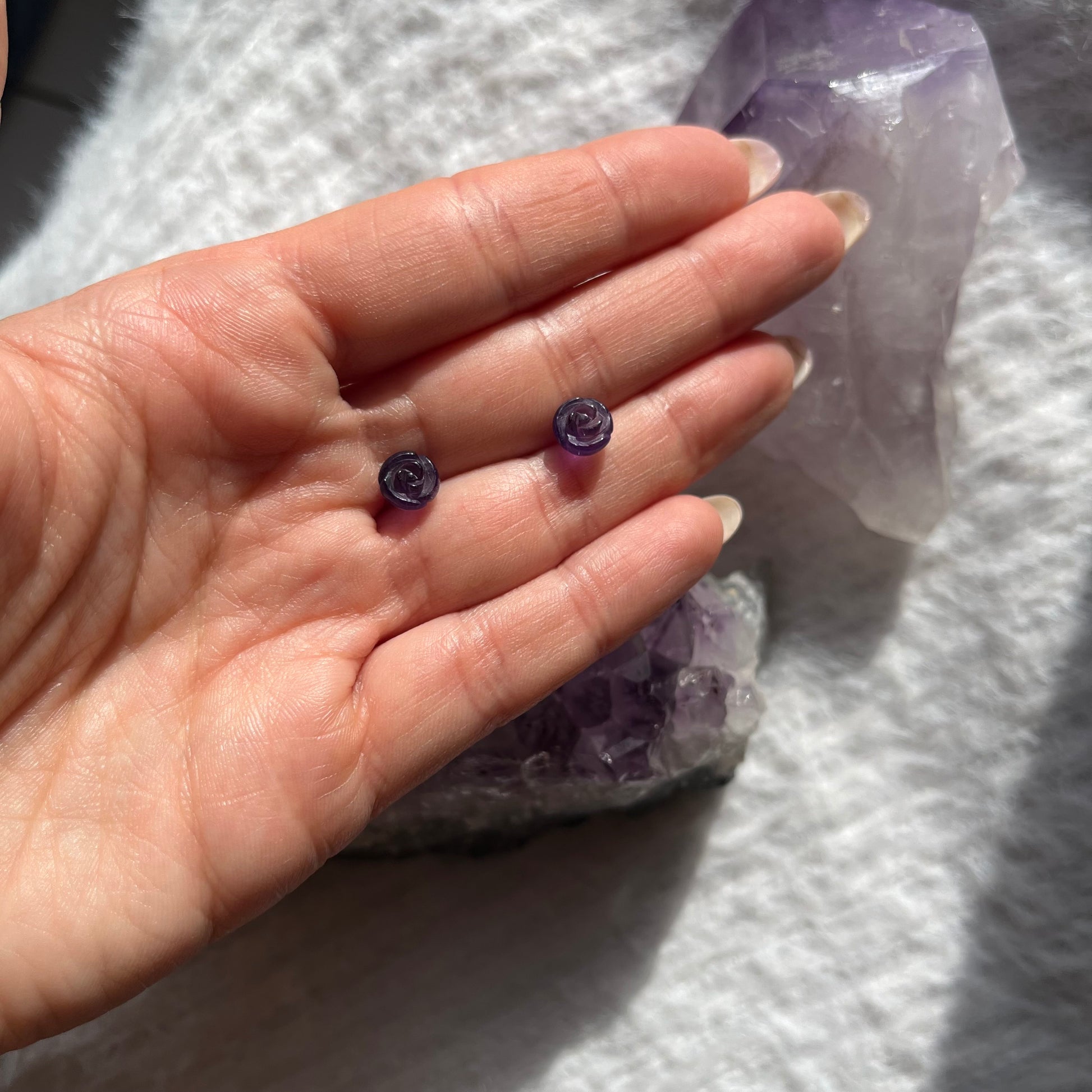 Mini rose in ametista, grandezza 4mm circa. Montatura in Argento 925. Chiusura con gommino